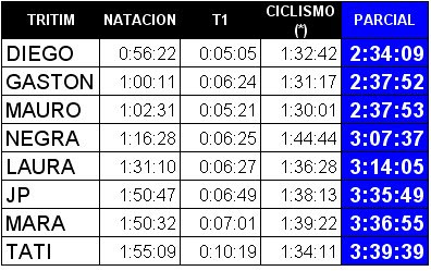 El más rápido en la bici fue Mauro seguido por gastón y Diego. La revelación es la Tati que hizo un parcial de 1h 34min muy cerca de los chicos y comienza a remontar.