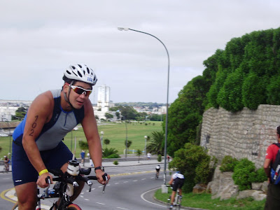 Ah! y antes que me olvidabe quiero contar algo que me sorprendió. Cuando estaba llegando a laT2 vi pasar a un competidor (que seguramente tuvo un problema mecánico irreparable) corriendo con la bicicleta en sus manos en sentido sur-norte por lo que al menos hizo una vuelta de ciclismo a pie!!. No pude ver su numero y por eso no sé si terminó pero realmente demostraría un temple increíble.
