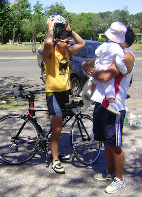 Seba (Perini) organizó el parque cerrado en la pileta del Parque Alem tal como se hará el 28 de noviembre y nos dio un trabajo de 4 vueltas al circuito de ciclismo (3 suaves y 1 a ritmo de competencia) + transición + 5-7km de corrida en el circuito del tria.