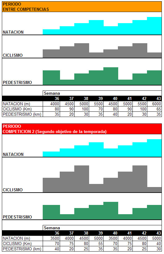 de volúmenes (1) de entrenamiento para aquellos triatletas de nivel intermedio