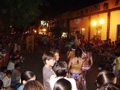 Toda una ciudad creando un verdadero carnaval en las calles de cada barrio con guirnaldas, pancartas, música, tambores y gente bailando.