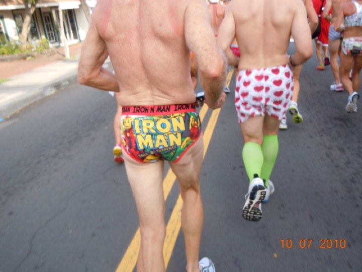Como si ya no fuese suficiente con la belleza del lugar, la magia de la carrera, la dificultad que implica estar allí haciendolo todo más increíble.....La Gran Isla no se queda conforme y organiza todos los años la UNDERWEAR RUN, una carrera desopilante y divertida en ropa interior donde participan todos los triatletas que van a disputar el campeonato mundial.