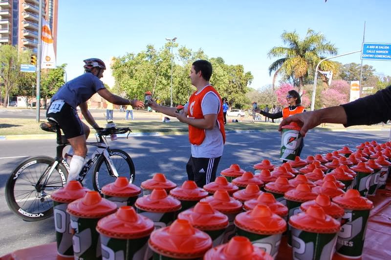 La hidratación en toda la carrera con agua y Gatorade se